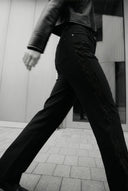 Yüksek Bel Düğme ve Fermuar Detaylı Bootcut Krep Pantolon -Siyah
