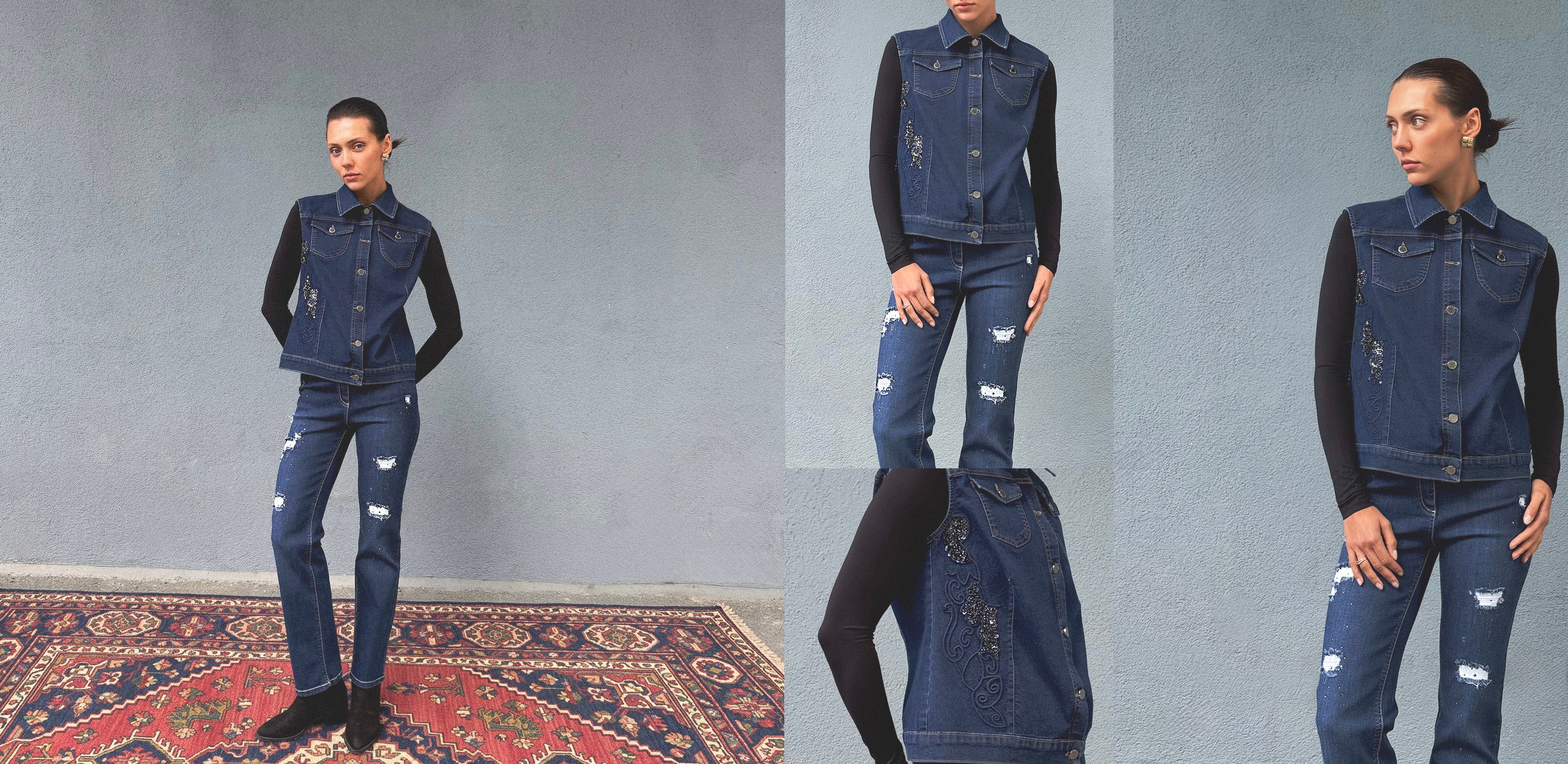 Taş Detaylı Yüksek Bel Likralı Kot Pantolon