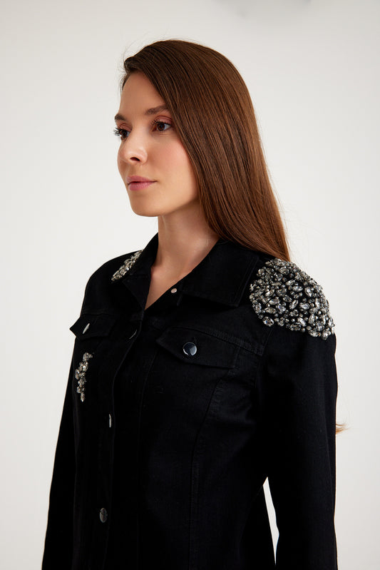 Expressive Taş Detaylı Yüksek Bel Siyah Slim Jeans