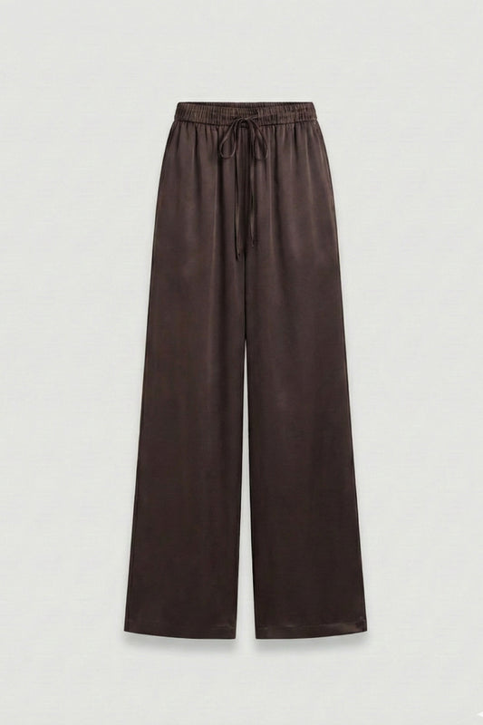 Kadın Kahve Saten Belden Lastikli Bol Paça Pantolon