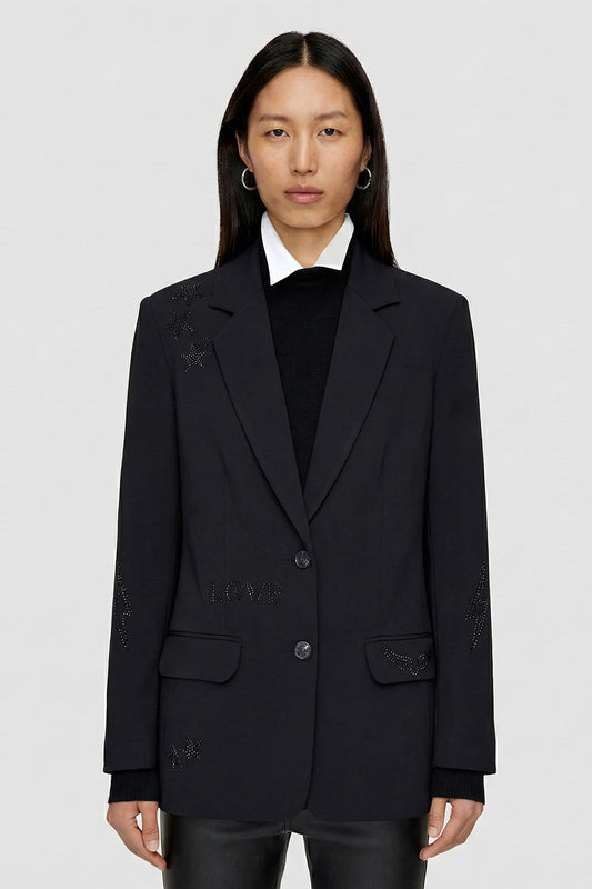 Siyah Kadın Taş İşlemeli ve Motifli Tasarım Blazer Ceket