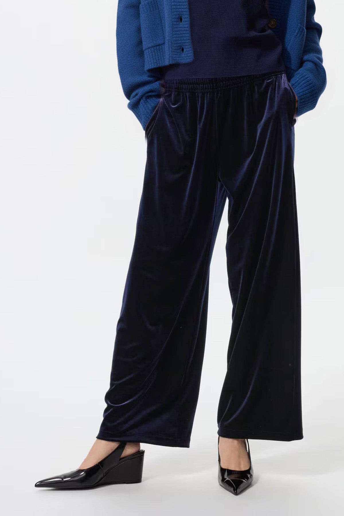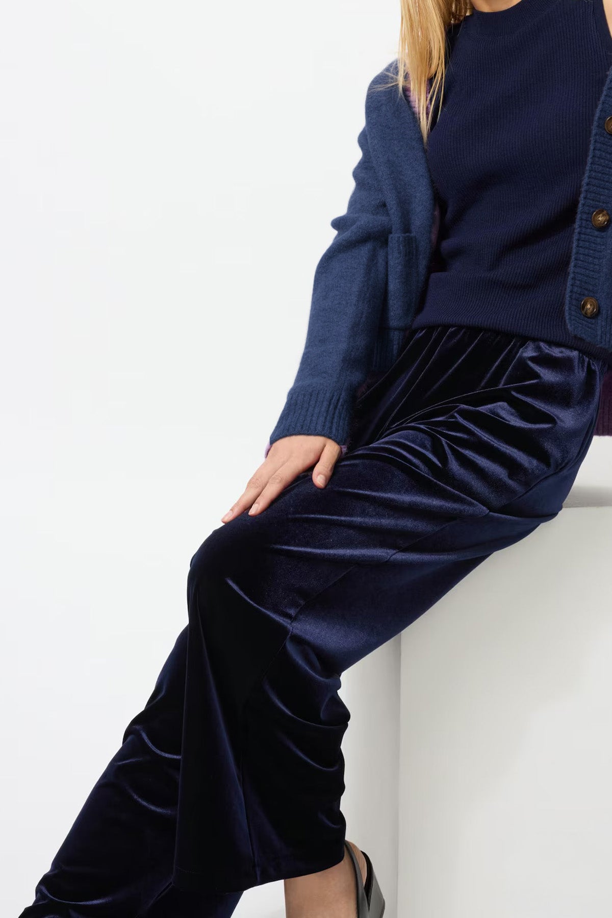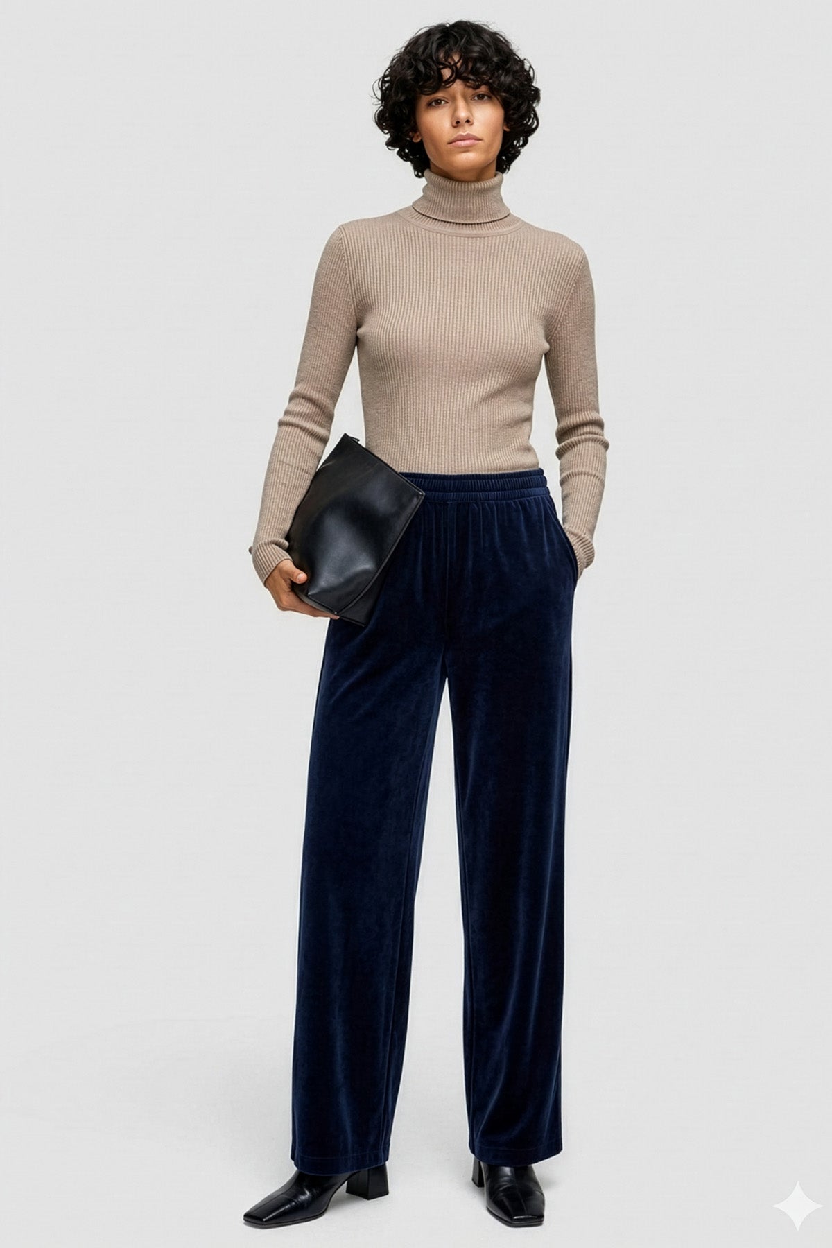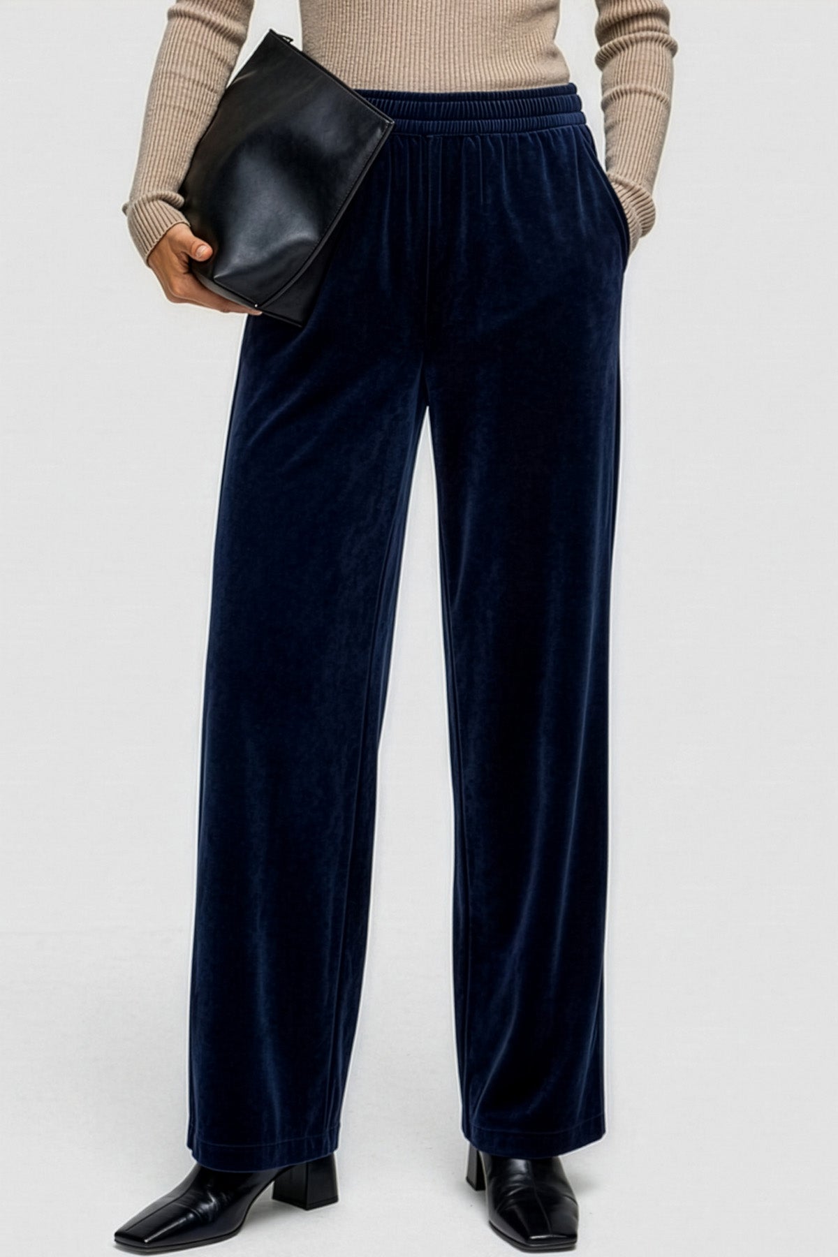 Yumuşak kadife dokusuyla kış stilinize sıcaklık katın. Beli lastikli ve bol kesim tasarımıyla hareket özgürlüğü sağlayan ve bacak boyunu uzun gösteren bu lacivert kadife pantolon, yan cepleriyle kullanım kolaylığı sunar. Hem spor hem klasik kombinlere uyum sağlayan bu parça ile zahmetsiz şıklığı yakalayın.