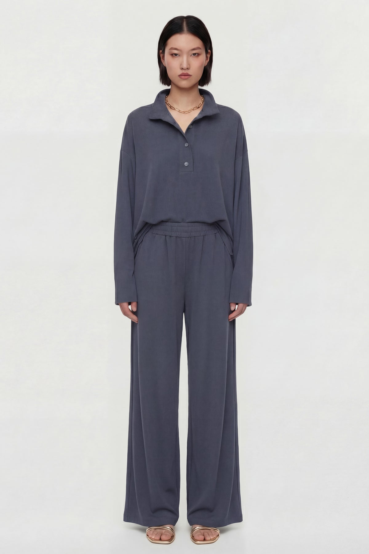 Indigo Modal Yumuşak Kumaş Bel Lastikli Geniş Paça Alt