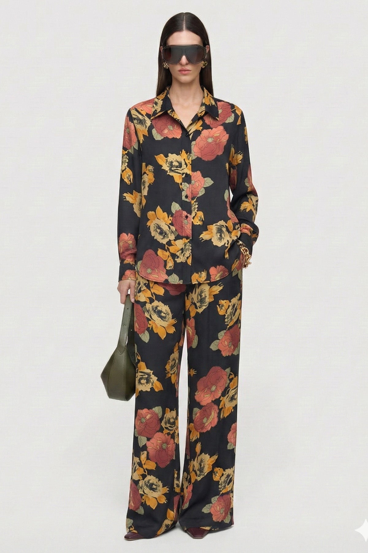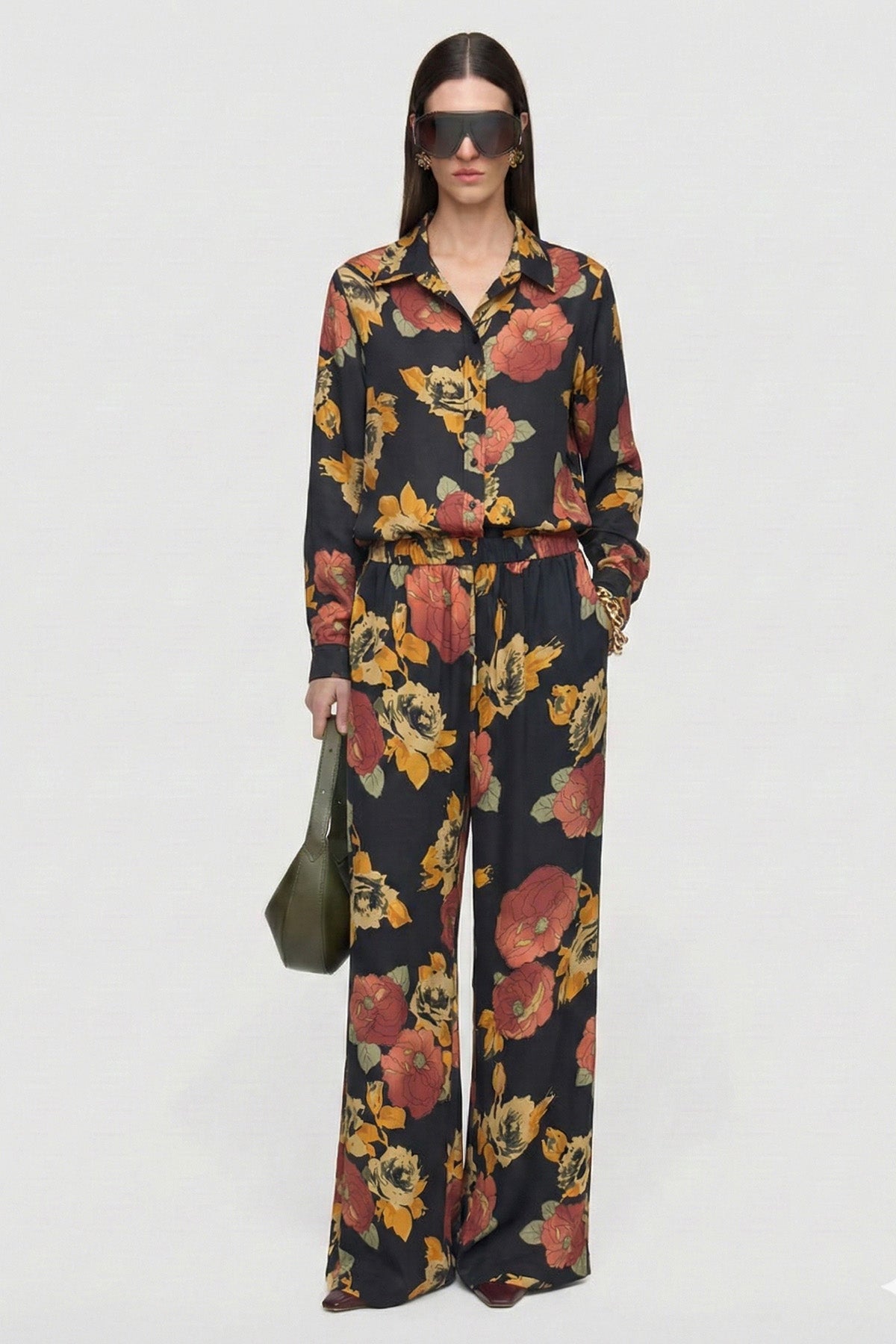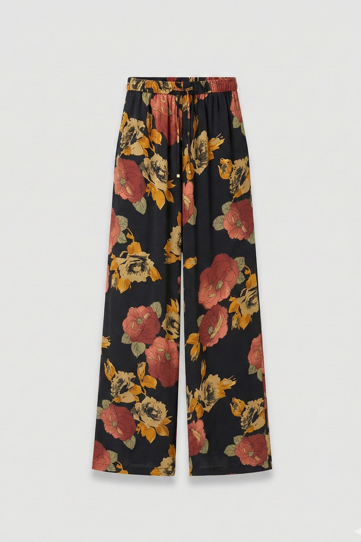 Kadın Kupro Desenli Belden Lastikli Bol Paça Pantolon
