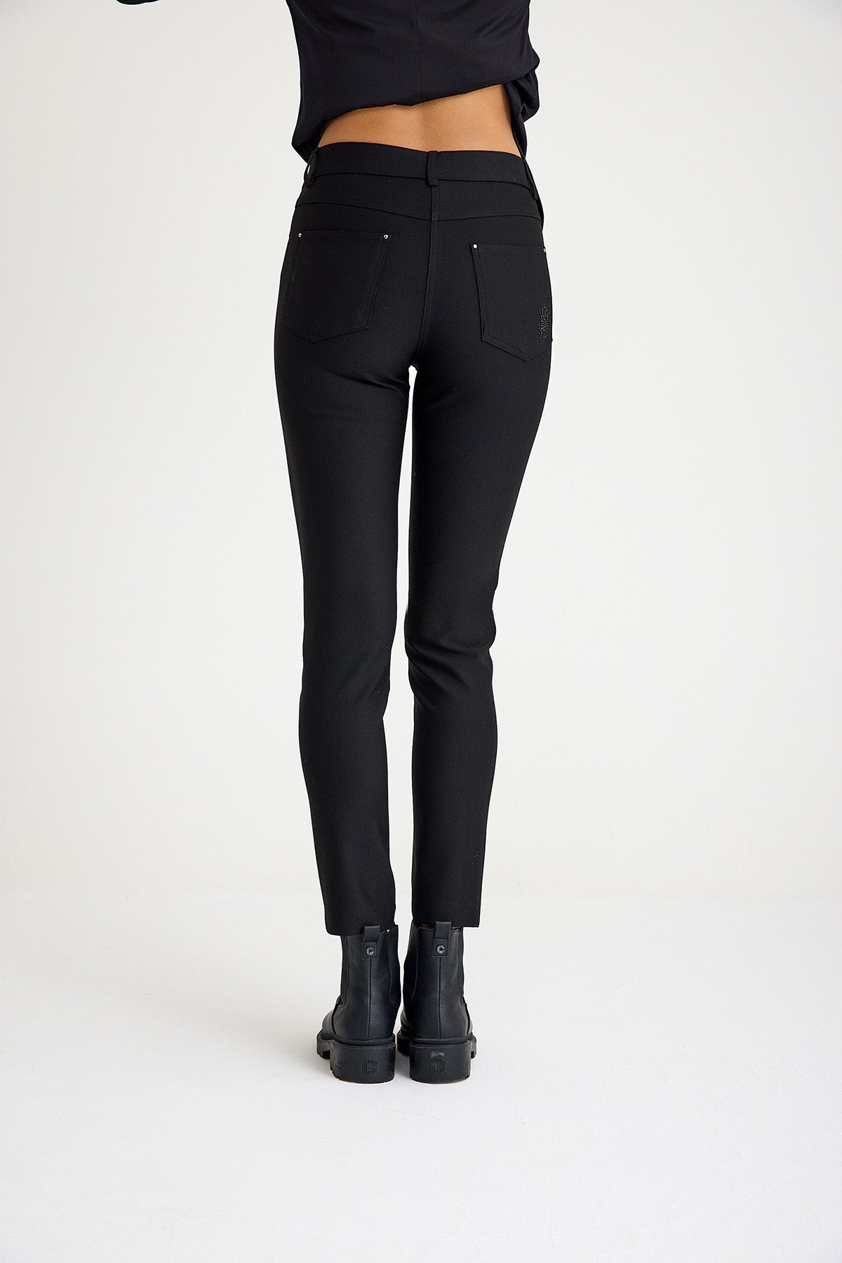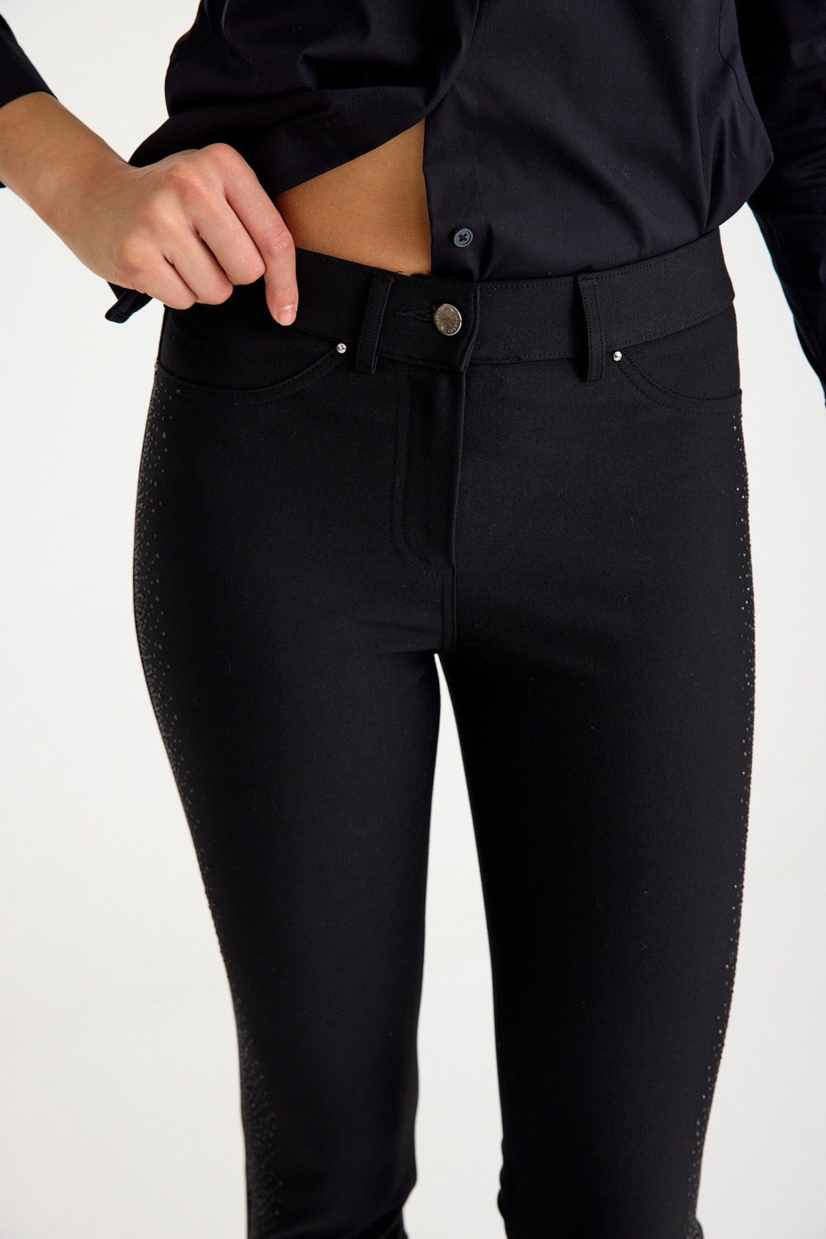 Kadın Siyah Yüksek Bel Vücut Toparlayıcı Kalın Çelik Örme Yanları Taşlı Pantolon