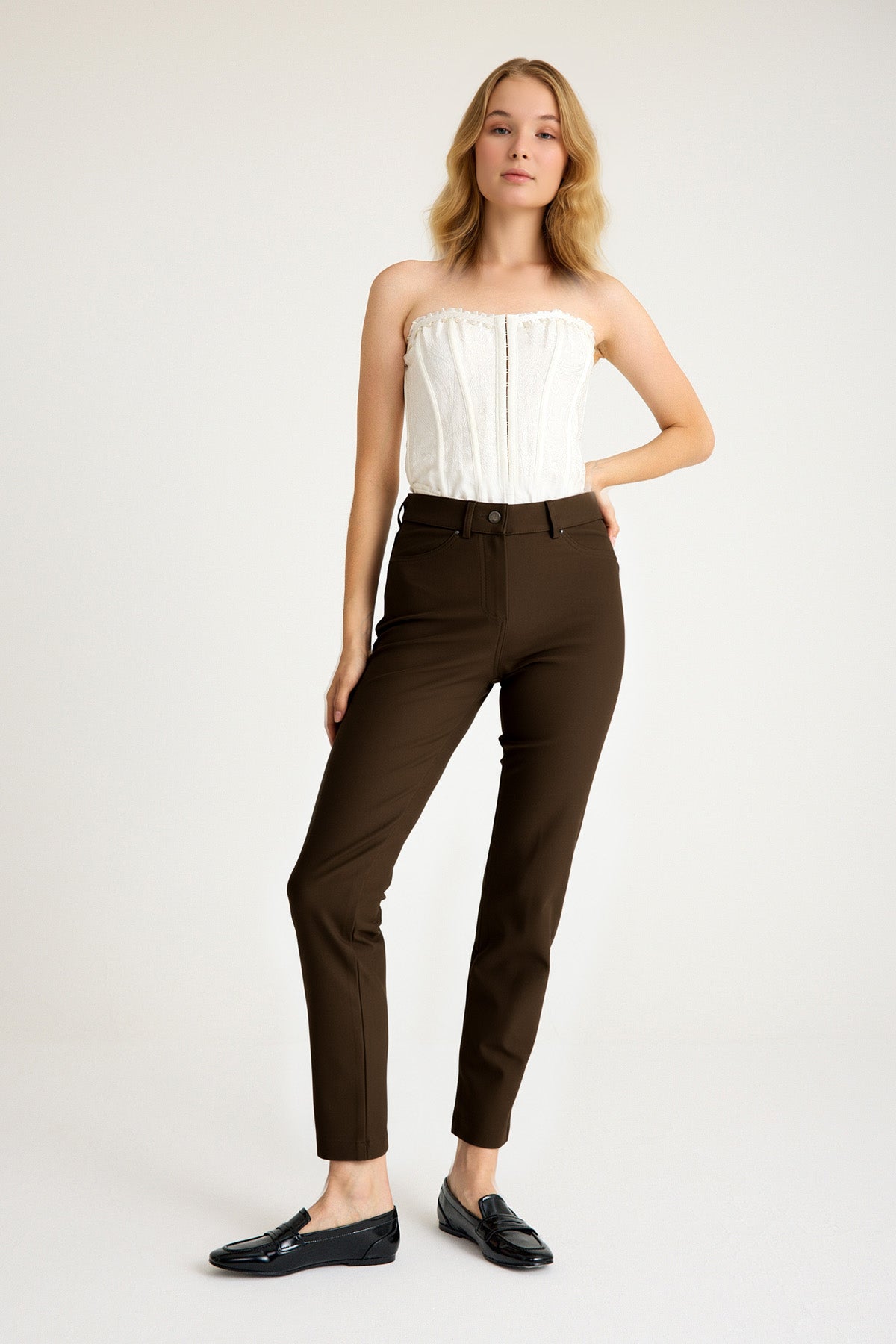 Kadın Yüksek Bel Vücut Toparlayıcı Örme Pantolon - Kahve