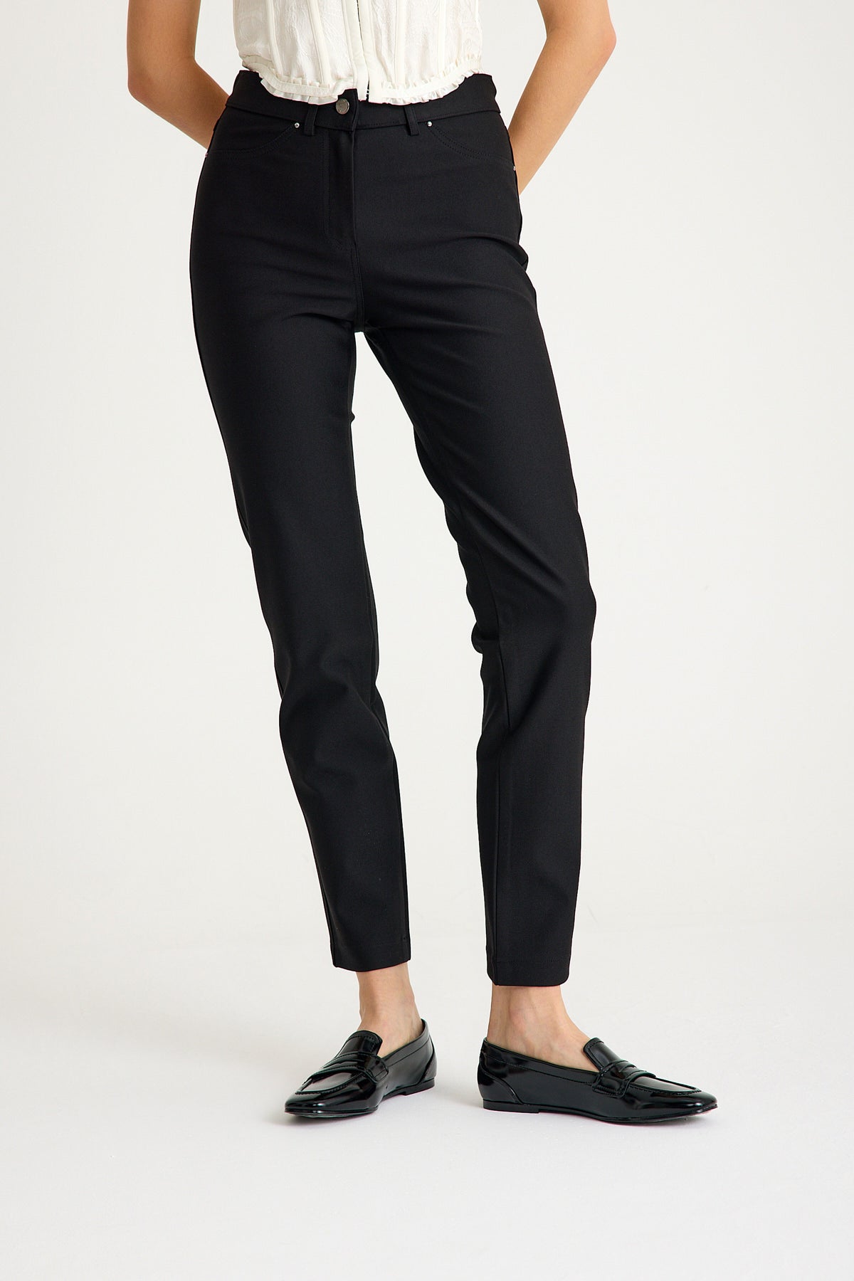 Kadın Yüksek Bel Vücut Toparlayıcı Örme Pantolon - Siyah