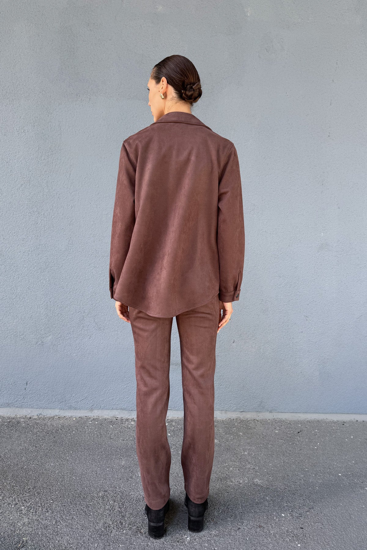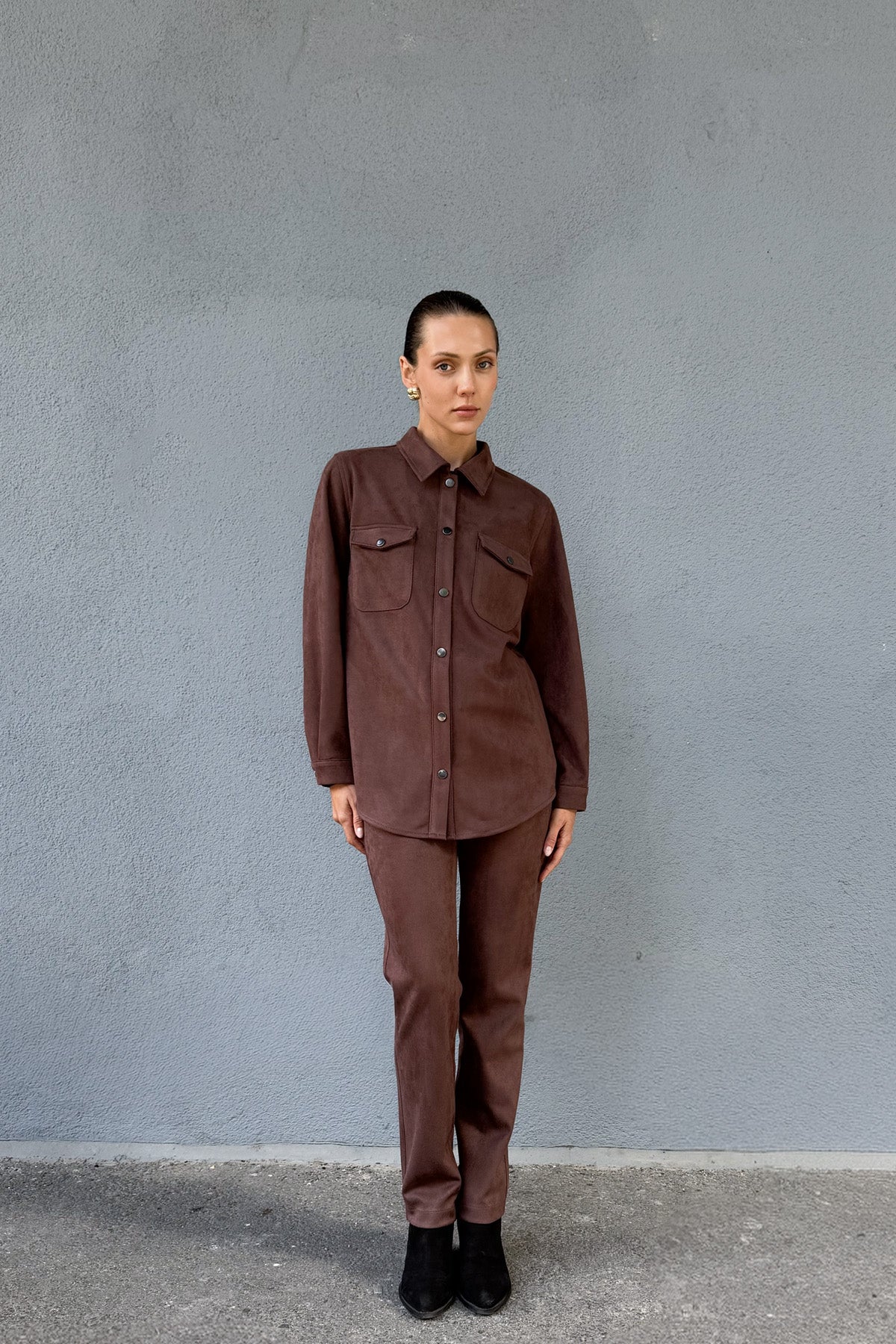 Kahve Kadın Süet Bol Kalıp Gömlek Ceket