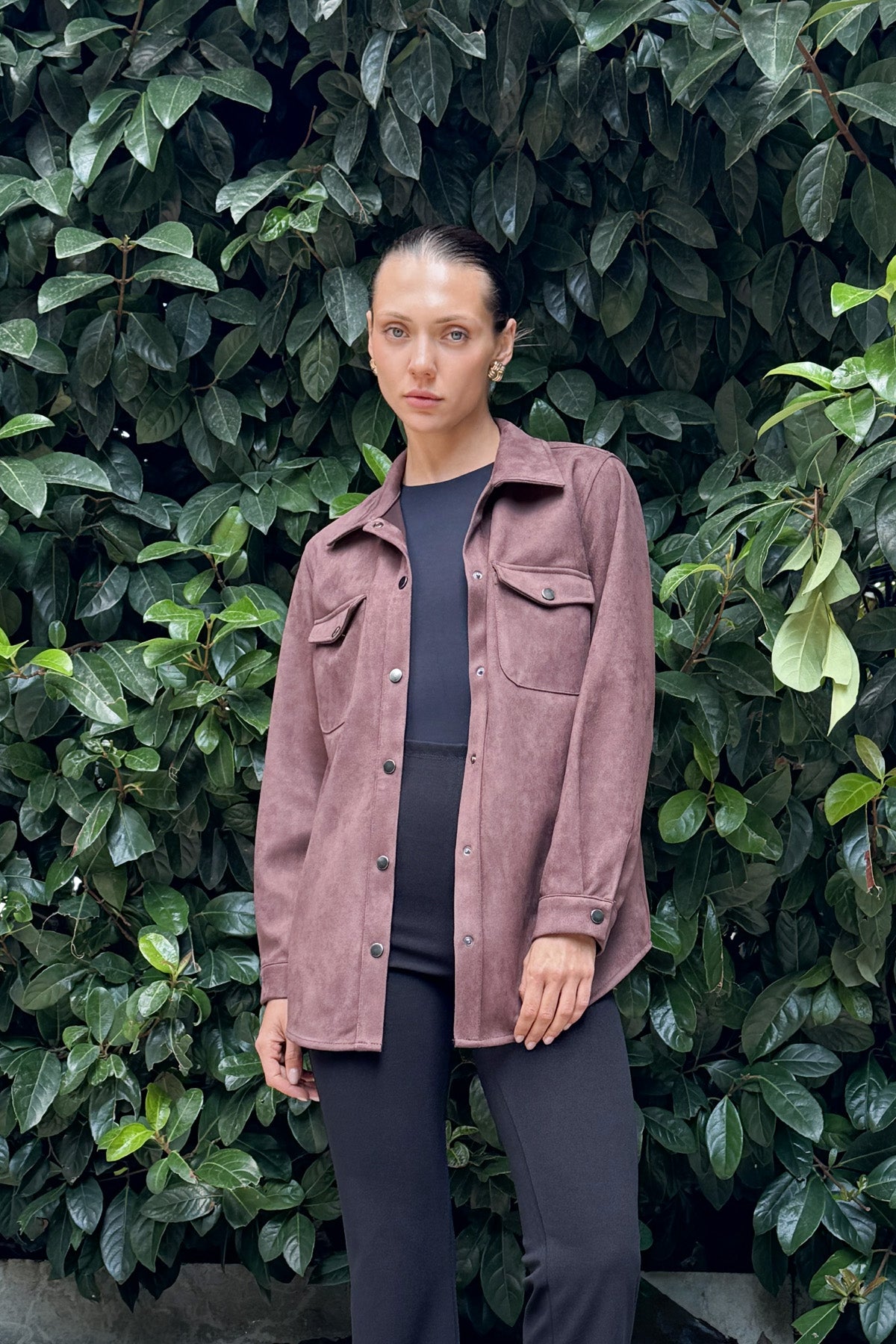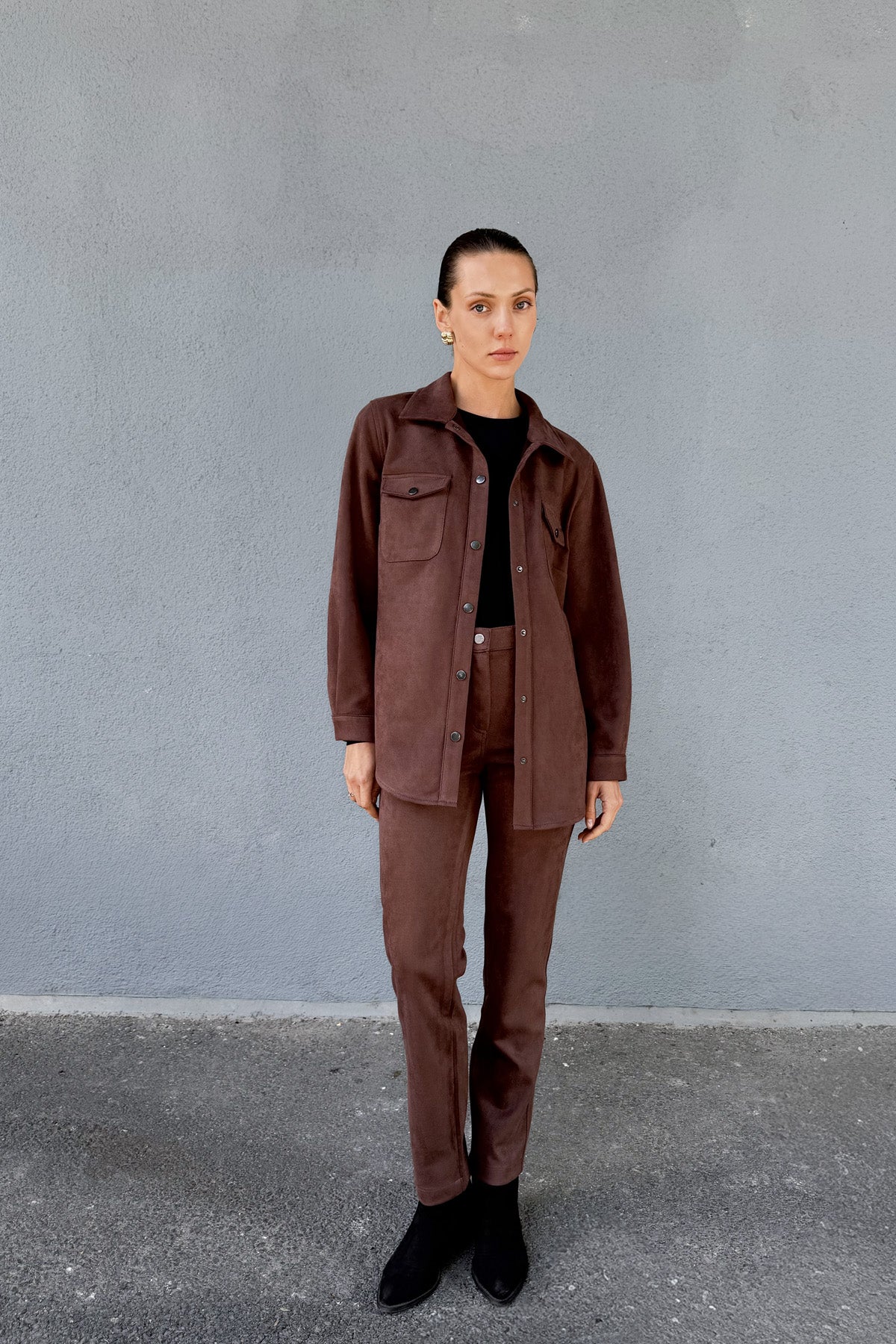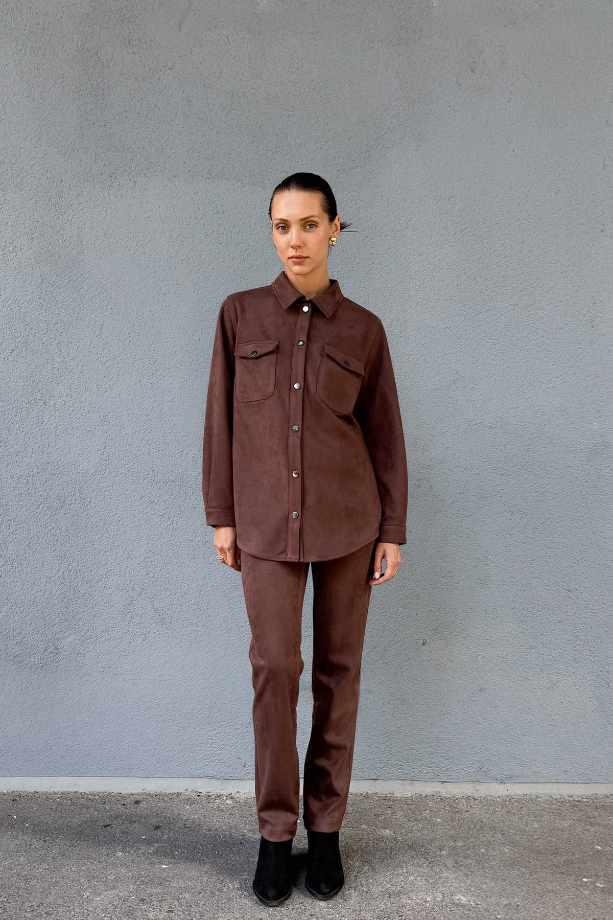 Kahve Kadın Süet Bol Kalıp Gömlek Ceket