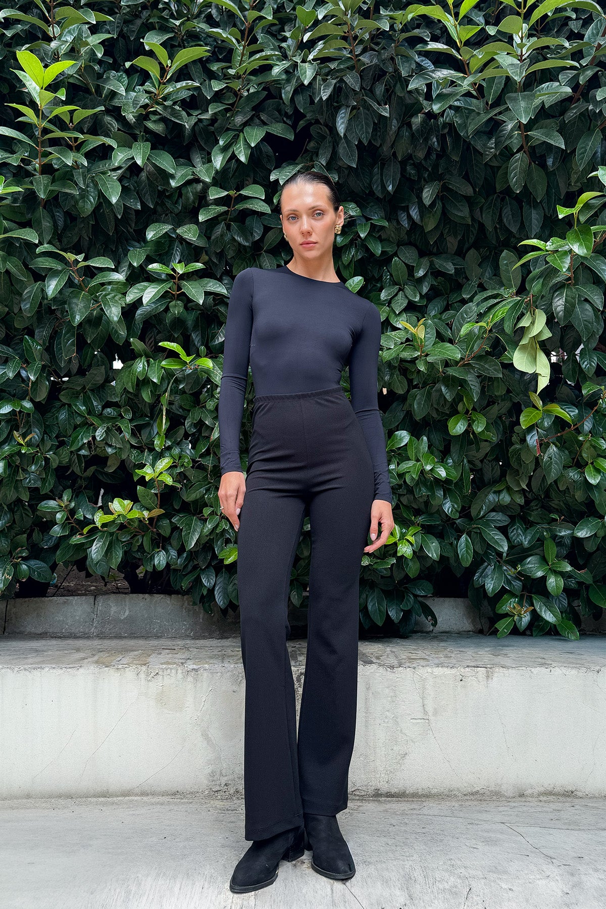 Krep Kumaş Belden Lastikli Hafif İspanyol Paça Pantolon