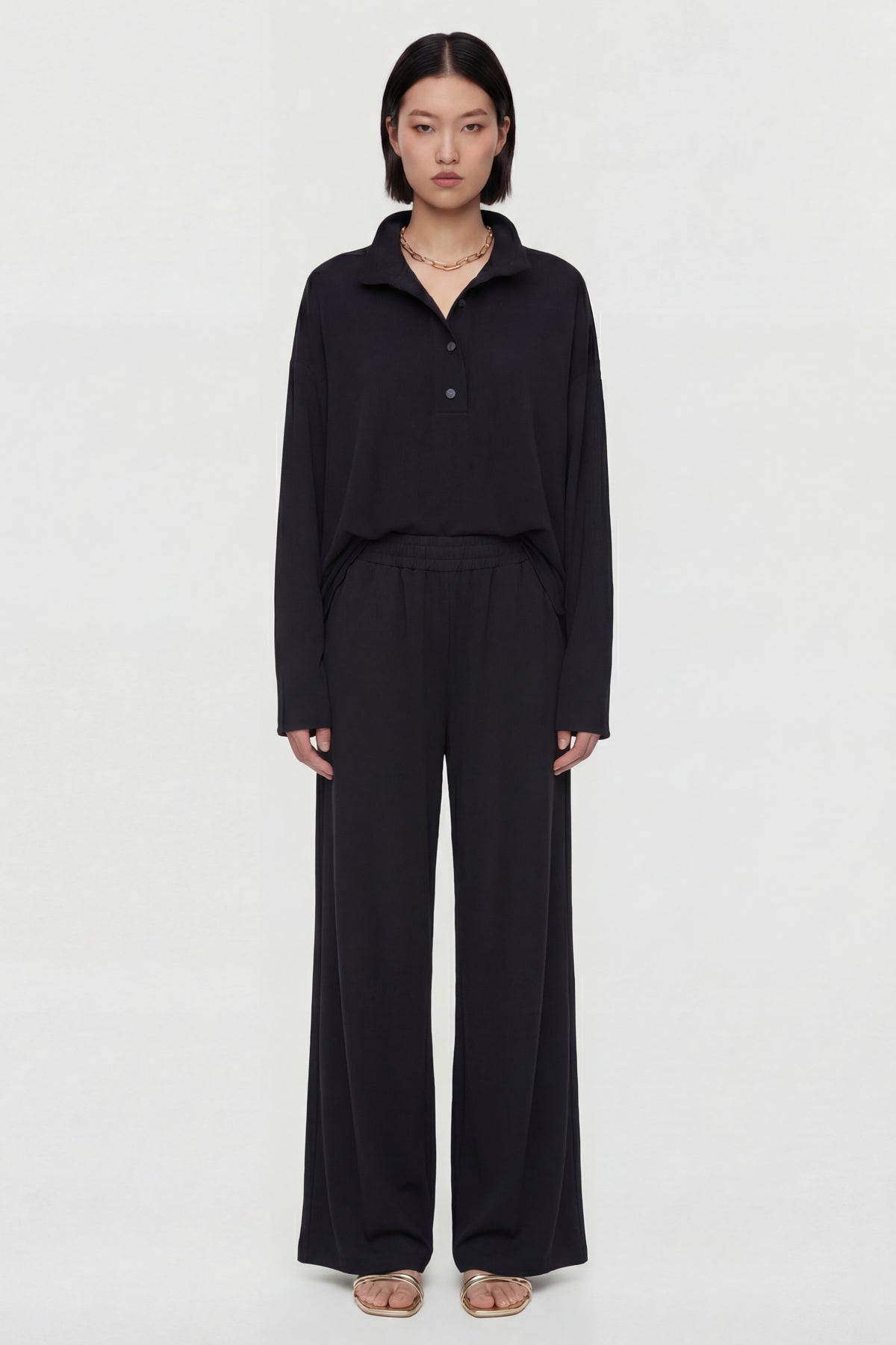 Siyah Modal Yumuşak Kumaş Sweatshirt Üst