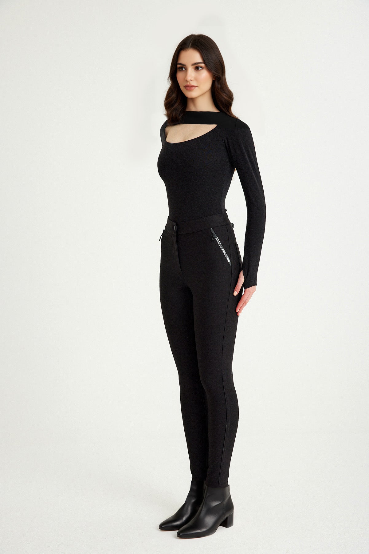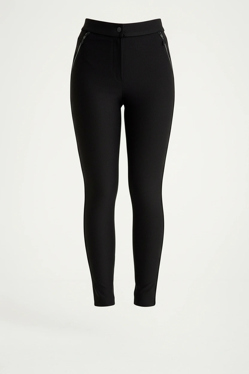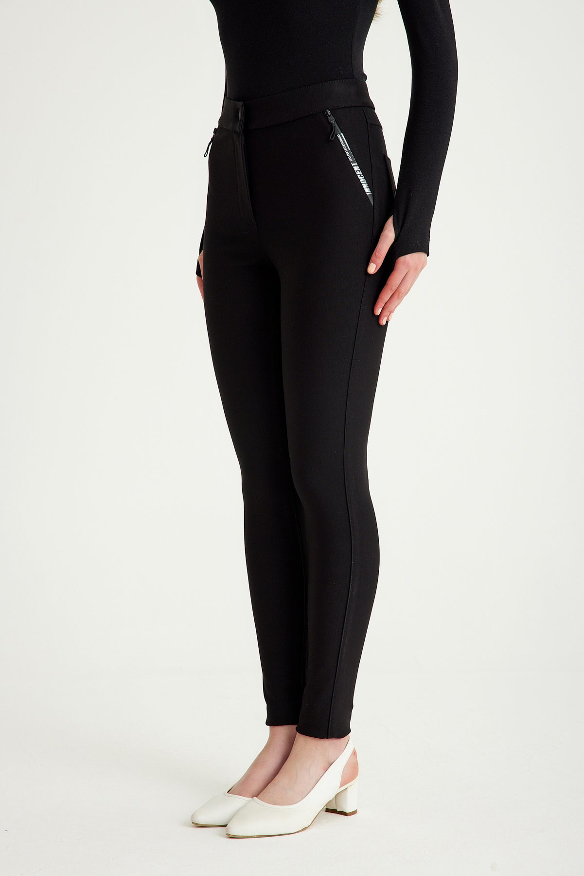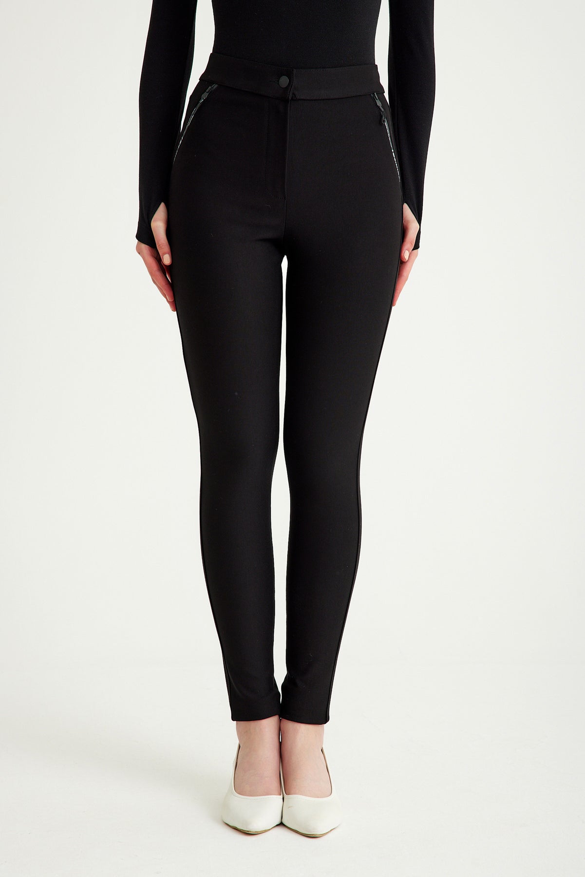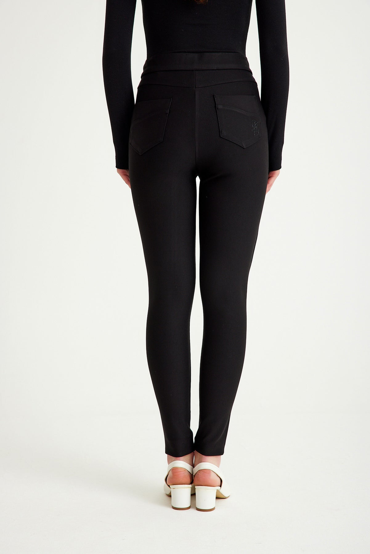 Siyah Yüksek Bel Tok Örme Kumaş Tayt Pantolon