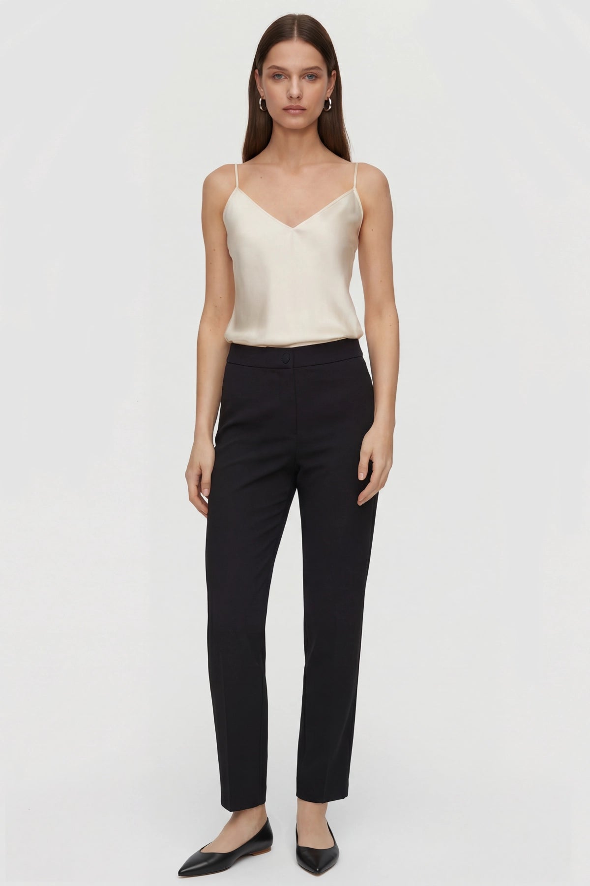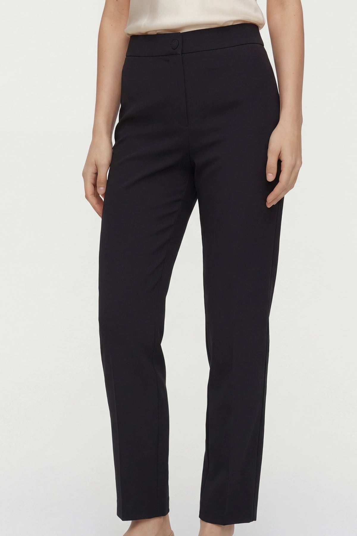 Yüksek Bel Düğme ve Fermuar Detaylı Bootcut Krep Pantolon -Siyah