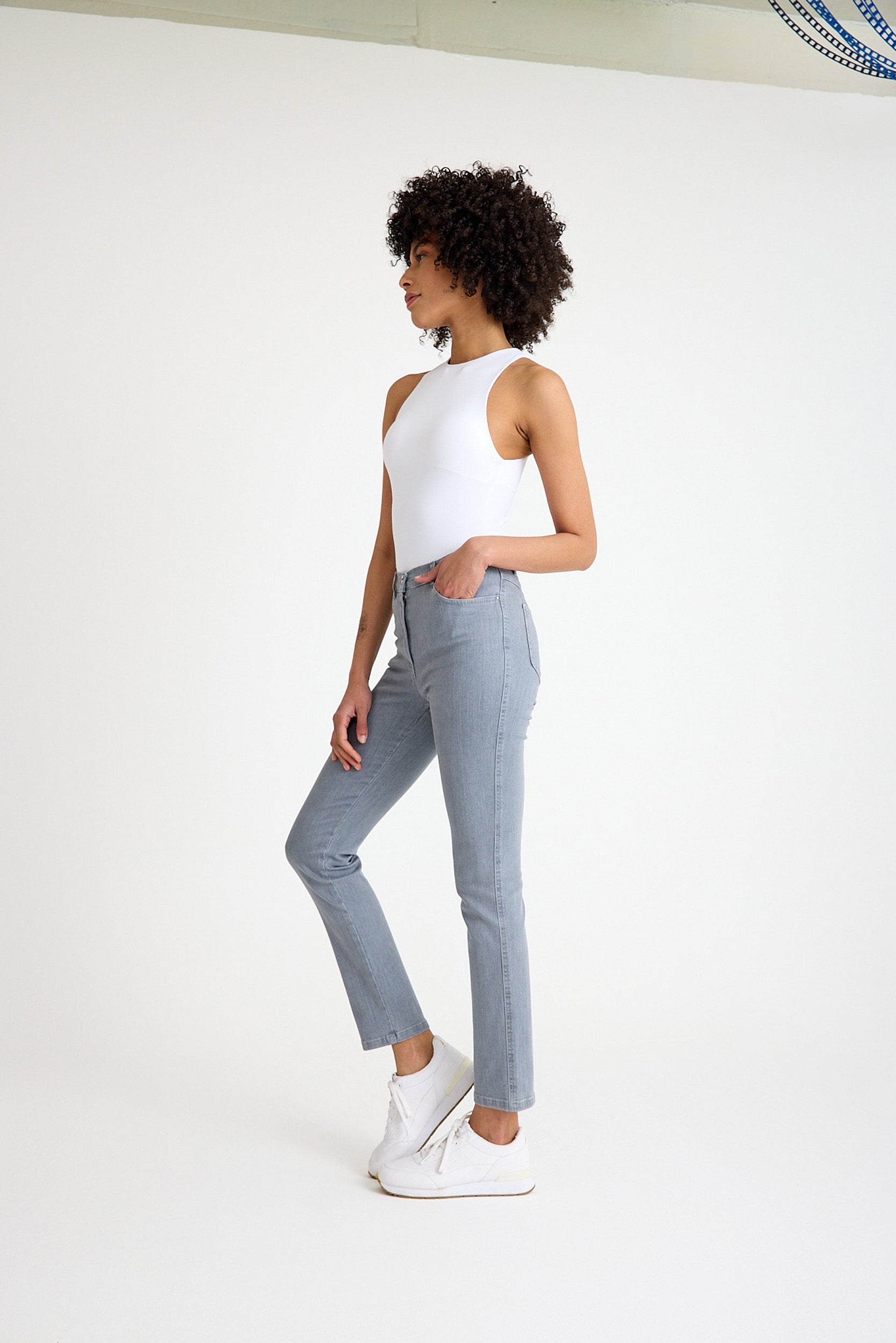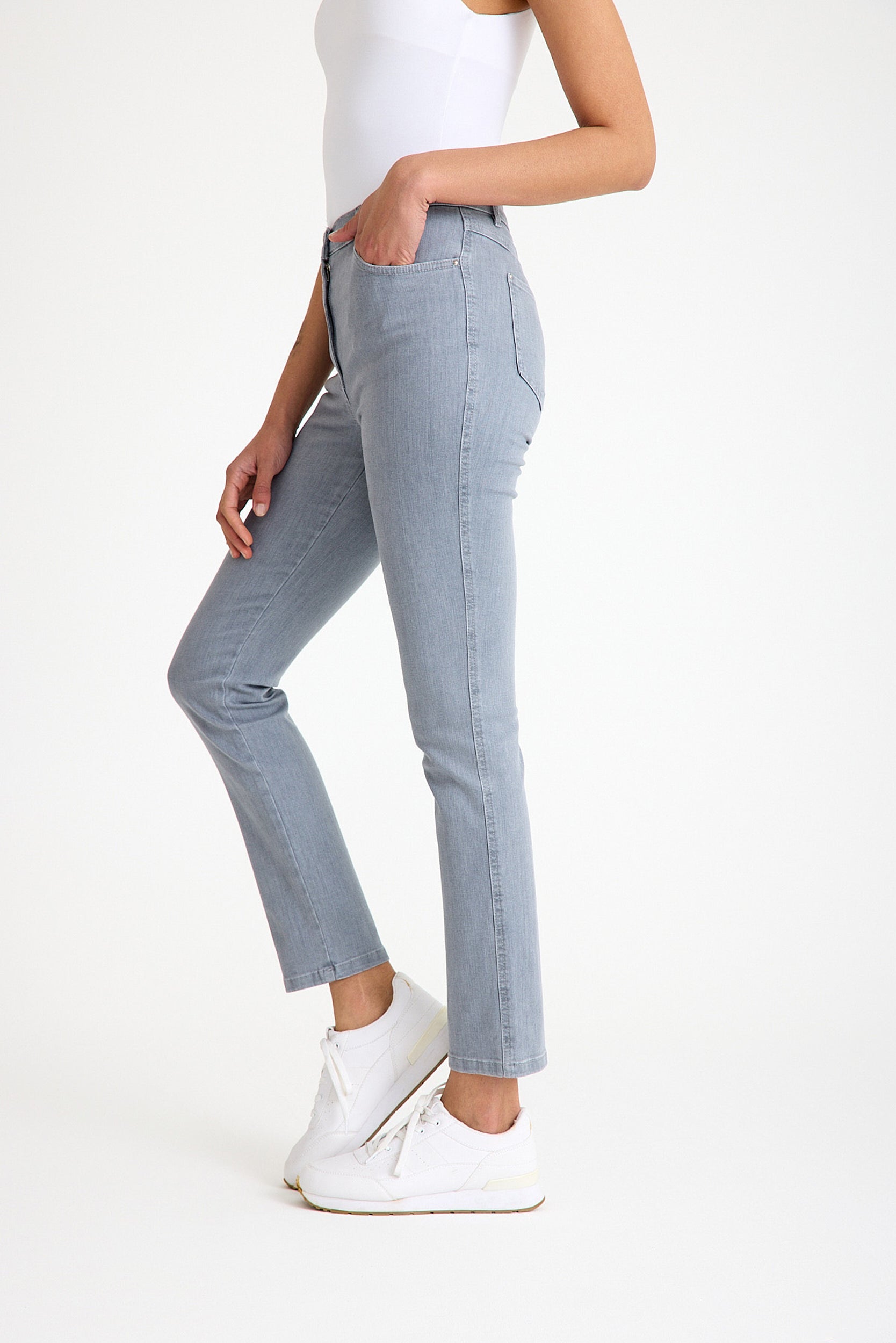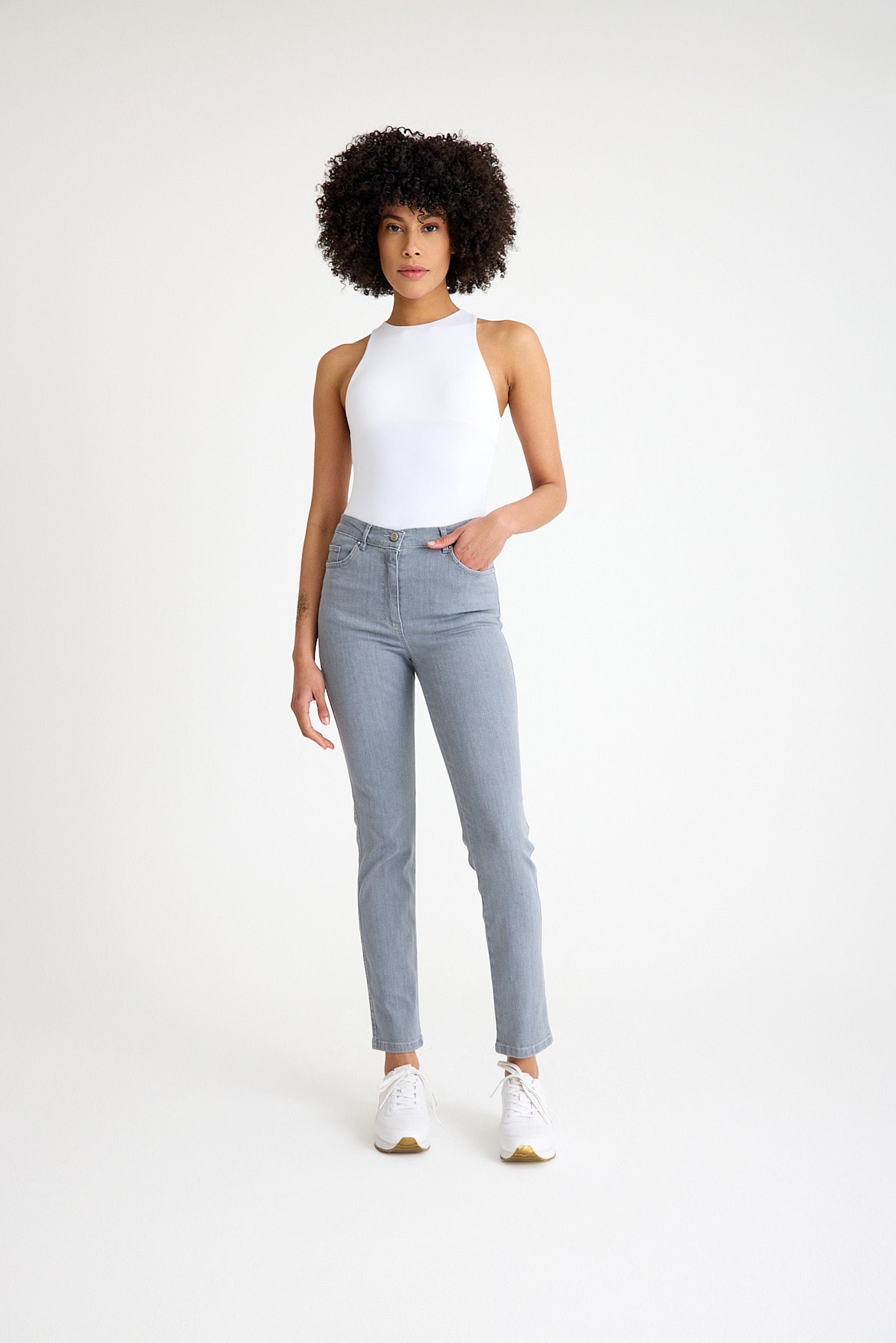 Yüksek Bel Gri Likralı Slim Fit Jean