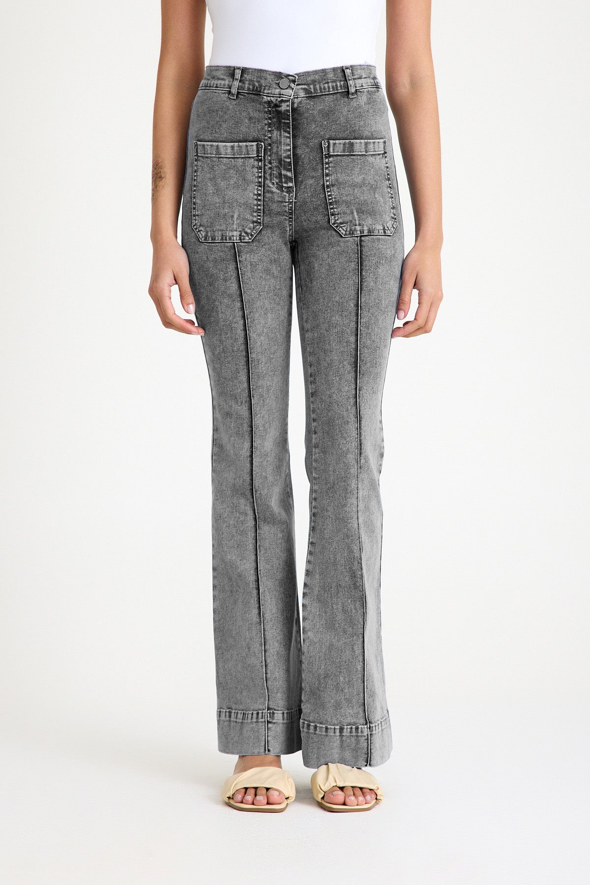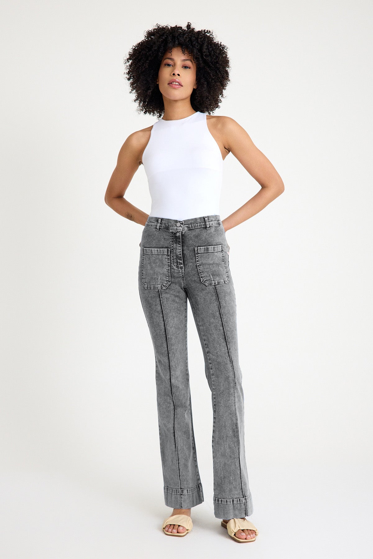 Yüksek Bel Likralı Loose Fit İspanyol Kalıp Jeans - Gri