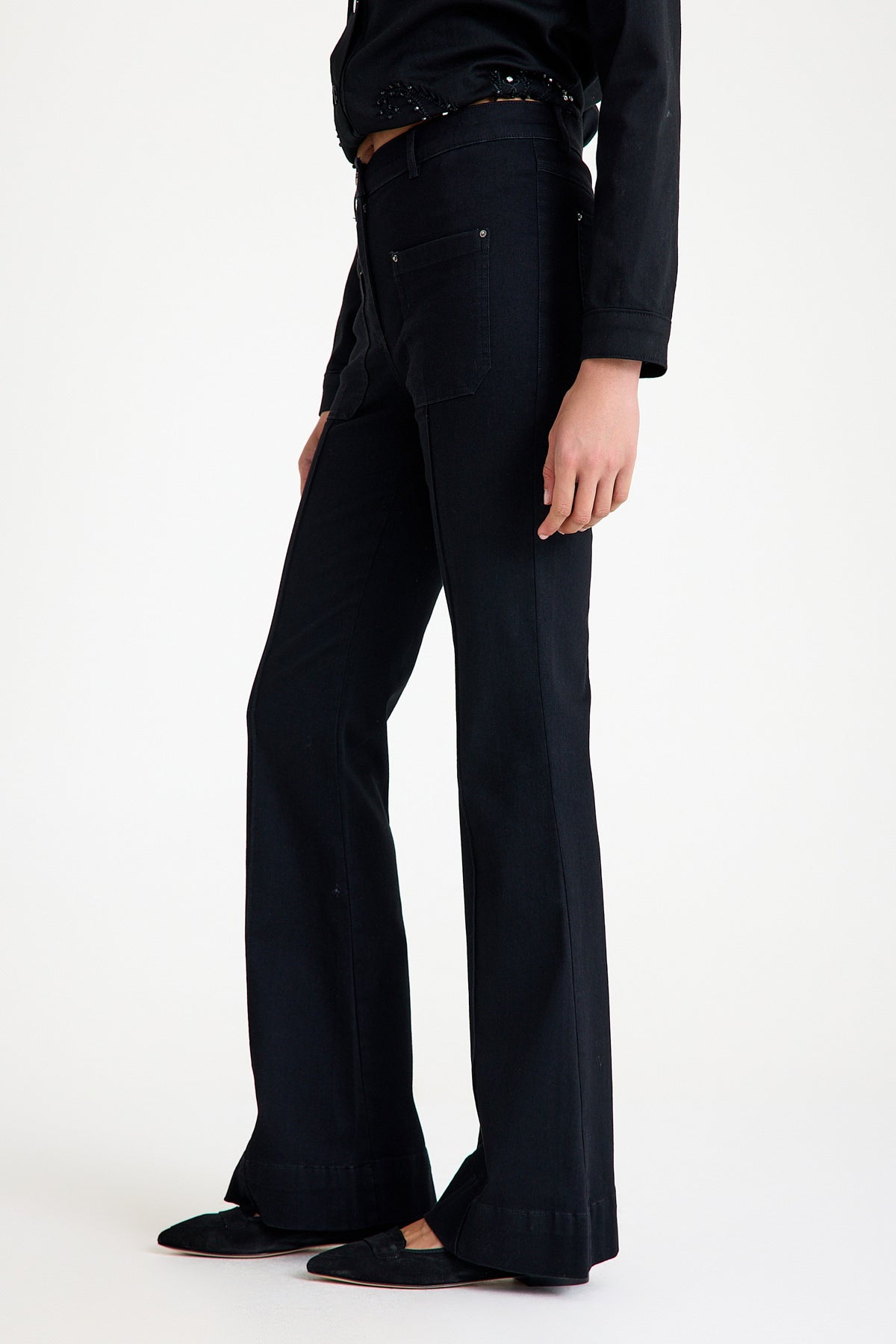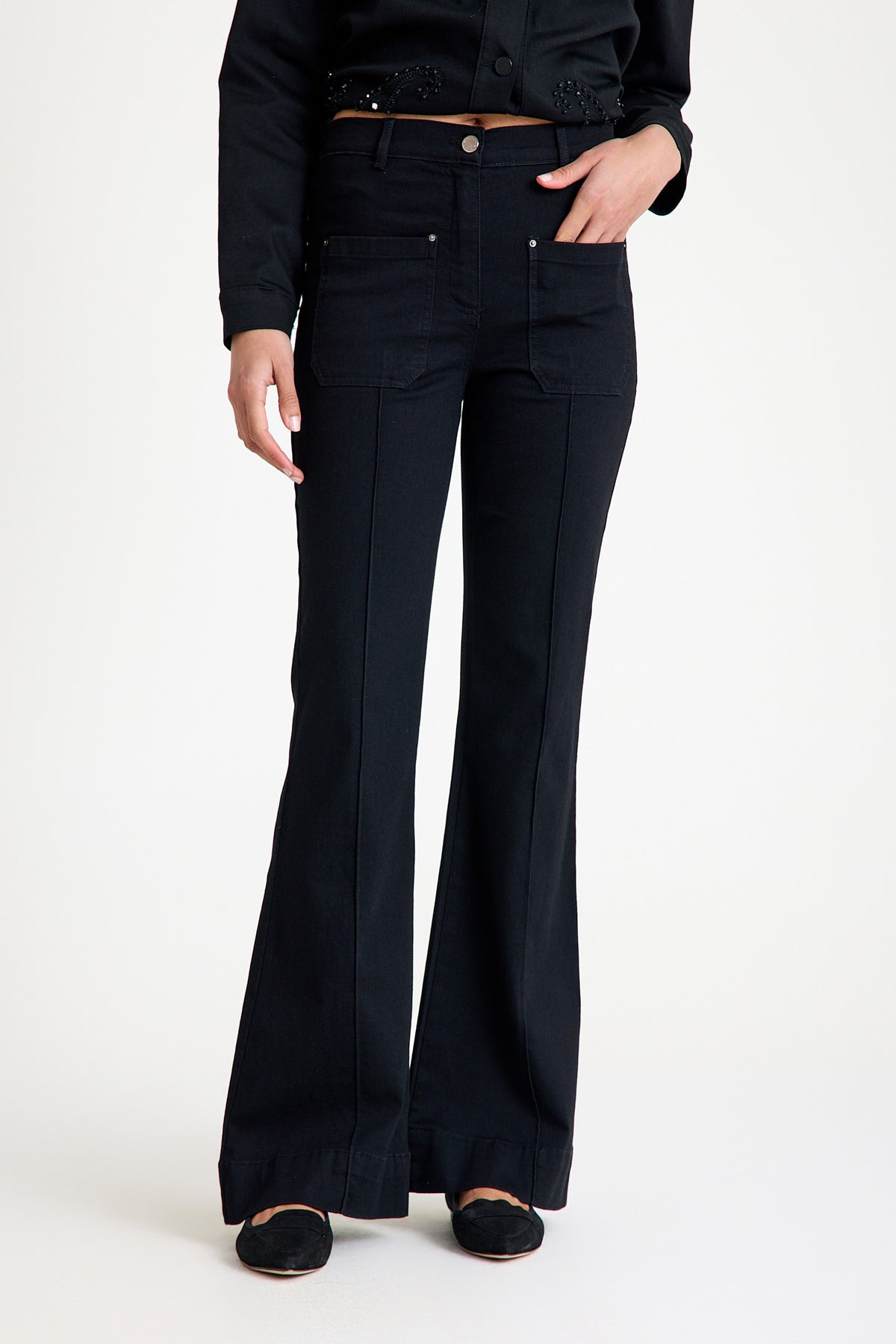 Yüksek Bel Likralı Loose Fit İspanyol Kalıp Jeans - Siyah